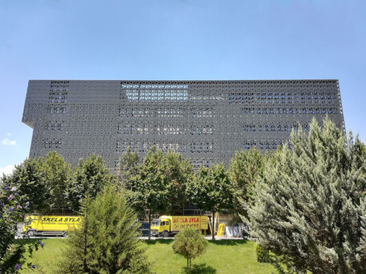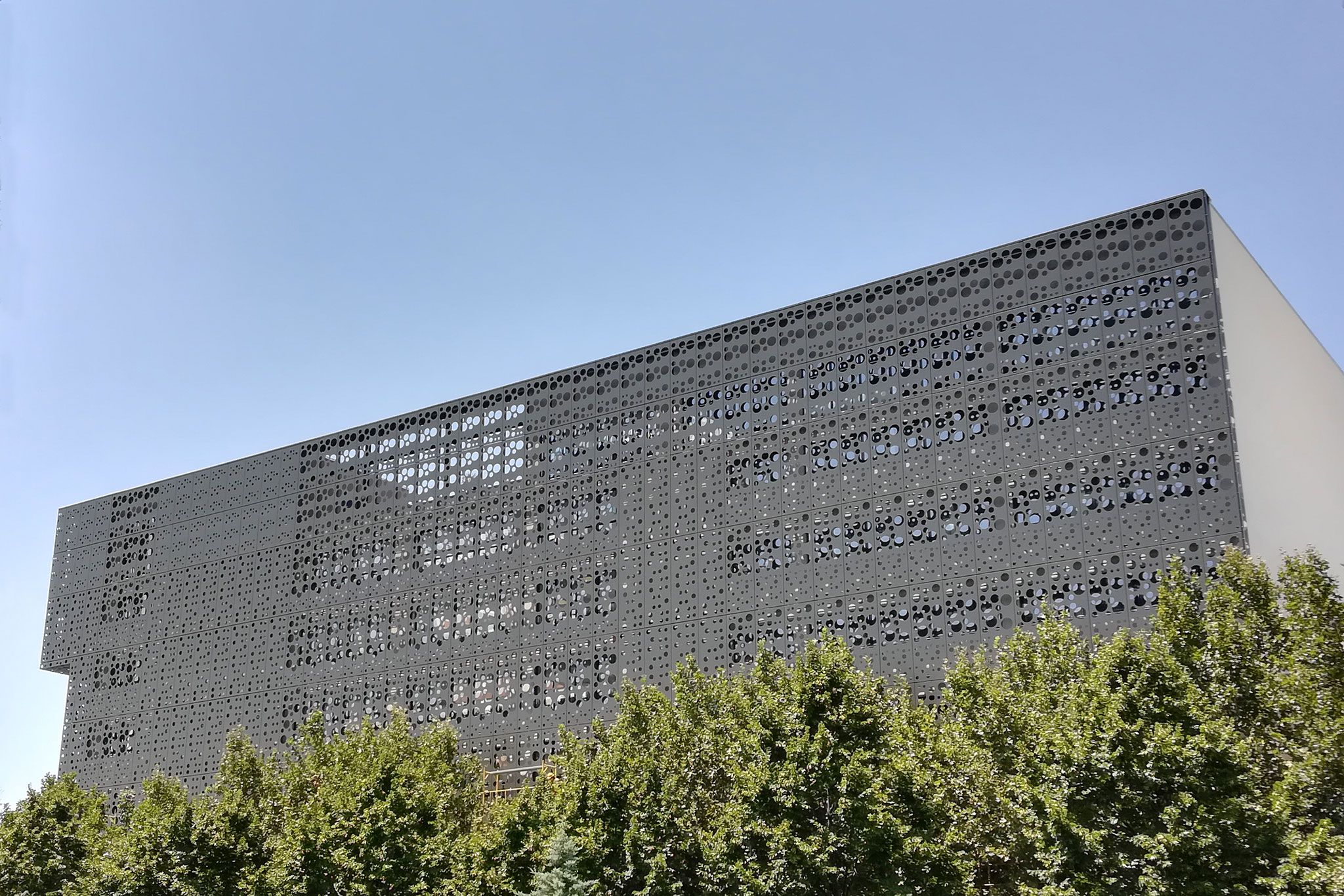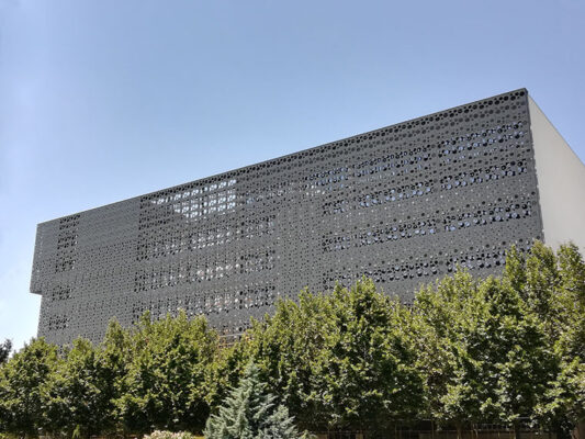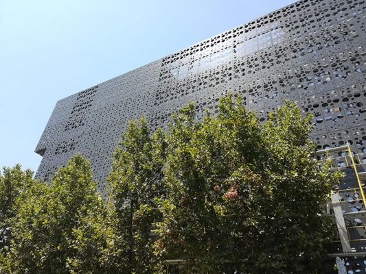Second Skin facade, steel construction of secondary facade and perforated composite secondary ventilated facade