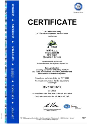 Production and installation of windows, facades and ventilation systems in accordance with international certificates for quality and environmental responsibility: